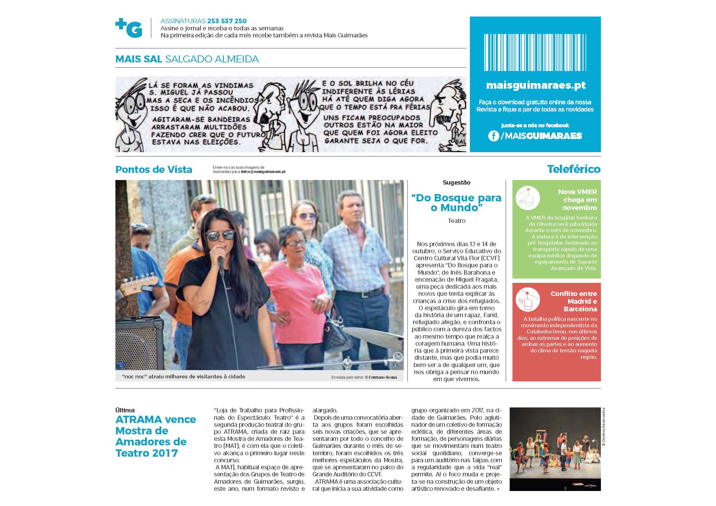 Continua muito activa a produção cultural e artística em Guimarães. Prova disso são as peças seleccionadas a concurso do MTA de 2017 que irão percorrer várias freguesias do concelho sendo depois escolhidas as melhores para a grande final no CCVF. A concurso encontram-se 6 associações vimaranenses.